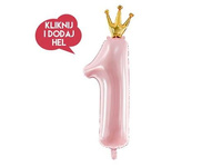Balon foliowy CYFRA 1 - KORONA, różowy, 30x90 cm, 1 szt
