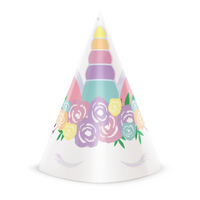 Czapeczki papierowe JEDNOROŻEC, mix kolorów, 16,5 cm, 1 op/ 6 szt
