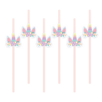 Słomki papierowe JEDNOROŻEC, różowy, 20 cm, 1 op/ 6 szt